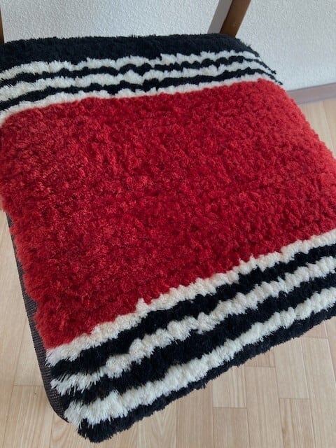 ノッティング織り/チェアマット/35×35㎝/【K007】濃い赤×白黒しま/ウール100%