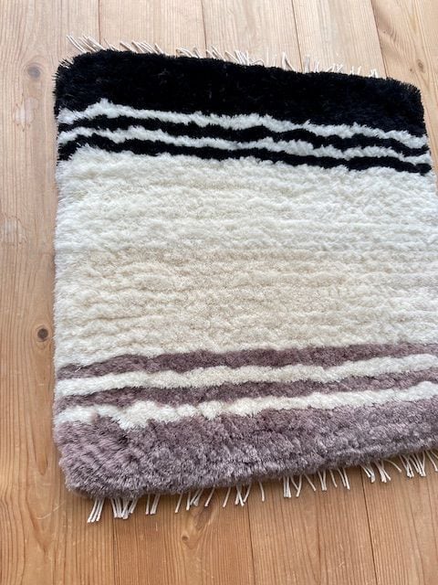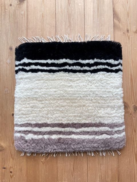 ノッティング織り/チェアマット/35×35㎝/【M098】ベージュ×白×黒ボーダー/ウール100%