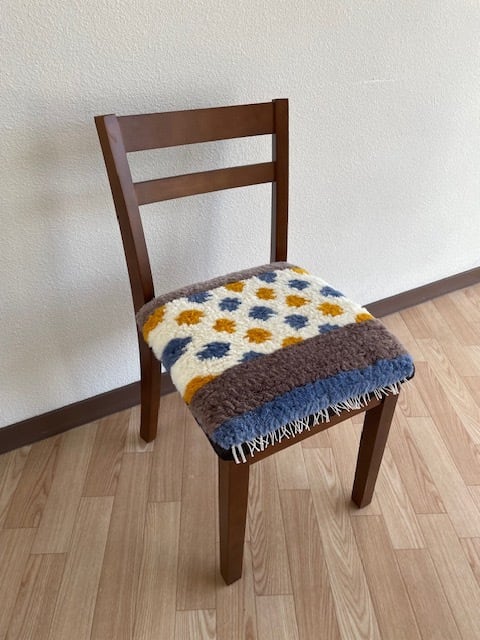 ノッティング織り/チェアマット/35×35㎝/【K015】オレンジ×ブルーグレー×白×ベージュ/ウール100%
